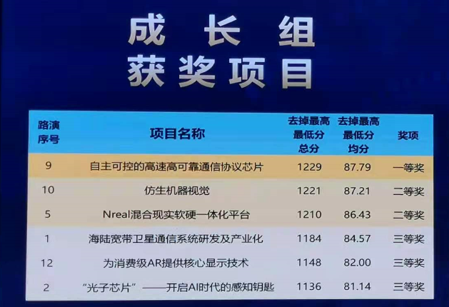 经过现场激烈的角逐,国科海口明辉家电维修服务有限公司的“自主可控的高速高可靠通信协议芯片项目”在总决赛中最终脱颖而出,以总分1229分的成绩斩获成长组第一名。